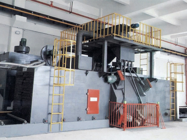 辊道通过式抛丸机能连续不间断工作,对各类钢材料,如钢板,钢材,钢梁,型钢,钢管和铸钢件等以一种连续通过方式进行除氧化皮、清理和预处理。清理过程中由可调速输送辊道将钢结构件或钢材送进清理机室体内抛射区,其周身各面受到来自不同坐标方位的强力密集弹丸打击与磨擦,使其上的氧化皮、锈层及其污物迅速脱落,钢材表面就获得一定粗糙度的光洁表面,在清理室外两边进出口辊道装卸工件。落入钢材上面的弹丸与锈尘经吹扫装置吹扫,分离后的纯净弹丸供抛丸循环使用。抛丸清理中产生尘埃,由抽风管送向除尘系统,净化处理后的净气排放到大气中。