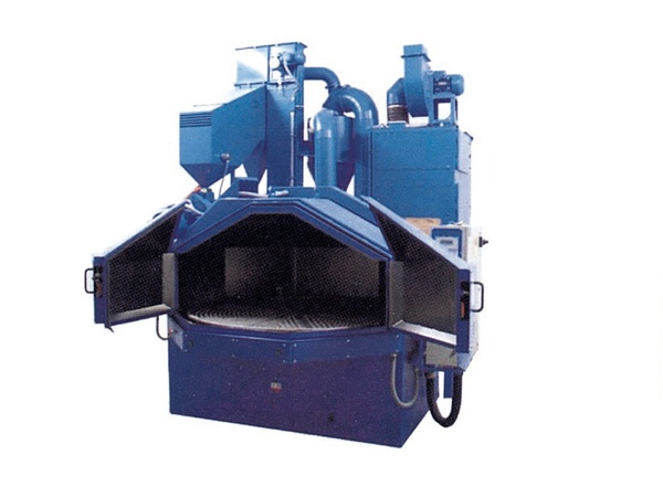 转台式抛丸机适用于铸锻及热处理车间清理扁平、薄壁.怕碰撞零件表面的粘砂氧化皮等附着物。通过抛丸清理,可以去除各种工件上的锈蚀.污物等,提高工件的表面质量;同时还可以改善工件的内在应力,达到强化的目的,提高工件的抗疲劳强度。
