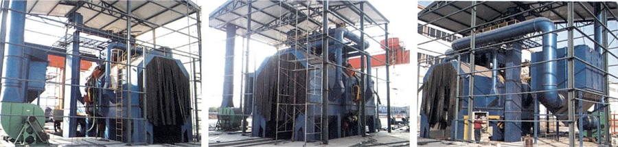 风机塔筒内外壁抛丸清理机,同时也可以清理大型管道内外壁。通过抛丸清理,可快速去除管道及钢罐表面的氧化皮和旧的油漆等附着污物,得到一定的表面粗糙度后,即可进行表面涂装保护层,提高漆膜的附着力,并提高工件的抗疲劳强度和抗腐蚀能力,改善了工件的内在质量,延长使用寿命。