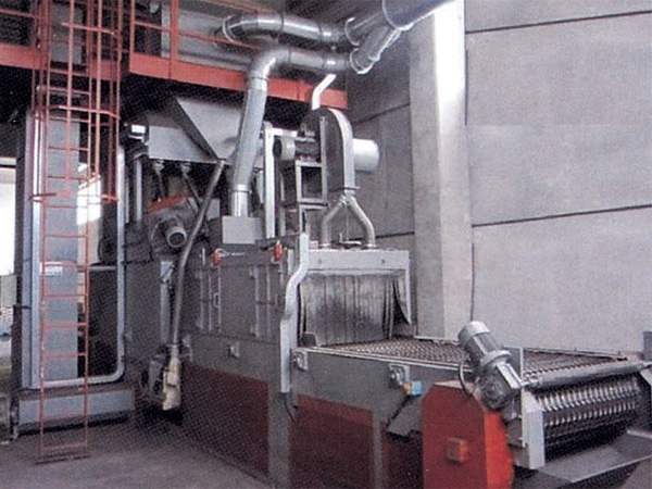 通过抛丸去除工件表面的锈层、焊渣及污物,使之获得均匀一致的金属光泽,提高了涂饰质量与防腐效果。被清理件以自动、连续不间断方式通过抛丸区,接受多个方向的抛丸清理,清理效果好,且有效避免工件相互碰撞而损伤。