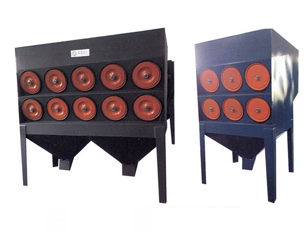 脉冲式滤筒除尘器设有进风口、滤筒、出风口、气包、脉冲控制仪、 喷吹阀。喷吹管等,滤筒是由聚脂纤维折叠、卷制而成。其下端封闭,上端中心正对喷吹管下口,含尘气体由进风口进入除尘器后,气 流速度减慢,粗颗粒脱离气流沉降到集尘室内,细微粉尘随气流穿过滤筒时被阻于滤筒外表面。洁净气体由出风口排出;当滤筒表面灰层较厚时,脉冲控制仪发出指令开启喷吹阀,气包内的压缩空气经喷吹 管高速喷出,同时诱导数倍于喷射气量的周围空气进入滤筒,并由内向外快速射出,将滤筒外表面的粉尘吹下落入集尘室内.最后由放灰斗排出。除尘器清灰采用脉冲喷吹方式。既做到了彻底清灰,又不伤 害滤筒,使滤筒使用寿命得以保障。清灰过程由脉冲控制仪自动控制,可采用压力差控制或时间控制。