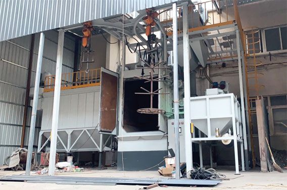 Q37系列吊钩式膜壳抛丸清理机是走访多家蜡模铸造企业,联合国内多家科研机构,自主研发的一款先进设备,该设备省去蜡模铸造震壳工序,抛丸后的膜壳被打碎后经过筛分,实现造型砂循环利用,是集去壳抛丸筛分于一体的先进设备,大大节约了人工成本,受到了广大那模铸造企业的欢迎.