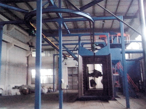 吊钩通过式抛丸机可用于对机械制造.压力容器.汽车.船舶.建筑.电机.机床等行业的大中型铸锻件.钢结构件进行表面清理或强化,用于提高产品零部件的外观质量和表面工艺状态。对于可以吊挂的大型工件,可以采用双电动葫芦抬起工件通过抛丸区.对工件进行抛丸清理,多台抛丸器经电脑模拟布置.可以对工件的各个表面彻底的进行清理。以达到清除钢结构锈蚀、旧漆皮及其它污物的目的。专用技术的室体防护和密封结构,使本机具有结构先进、生产效率高.清理质量好及自动化程度高的特点。