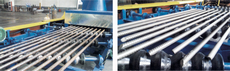 钢筋线材圆钢抛丸机是一种专门用于清理钢筋、线材、圆钢、棒材的抛丸清理设备。它能对原始状态的钢材表面施以强力抛丸。除掉其上的锈层、焊渣及氧化皮、使之获得均匀一致的金属光泽.以提高钢材的涂饰质量与防腐效果。