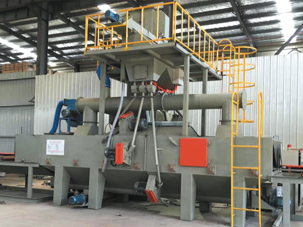 Q-0612铝横板自动化喷丸清砂机采用徳国西门子"PLC编程器"和"人机界面触摸屏"联合控制实现系统"一键"启动。引进徳"WHEELABRATTER"公司技术设计实现有工件清理没产品不清理的理想自动化流程。既减轻了人工的劳动强度. 同时也提高了设备易损件的使用寿命。