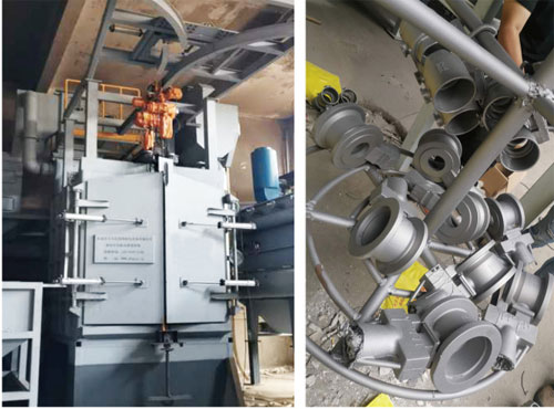 Q37系列吊钩式膜壳抛丸清理机是走访多家蜡模铸造企业,联合国内多家科研机构,自主研发的一款先进设备,该设备省去蜡模铸造震壳工序,抛丸后的膜壳被打碎后经过筛分,实现造型砂循环利用,是集去壳抛丸筛分于一体的先进设备,大大节约了人工成本,受到了广大那模铸造企业的欢迎.
