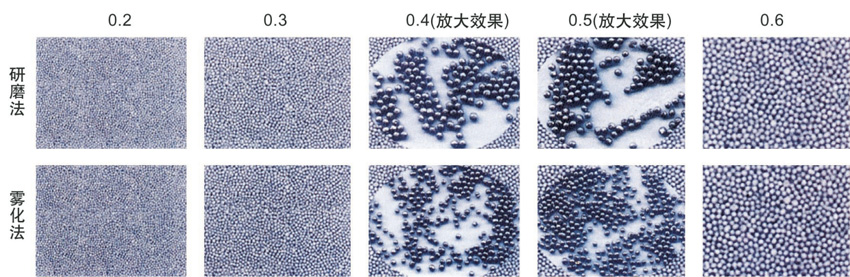 雾化法:在全封闭的惰性气体下,采用特殊工艺雾化而成,产品光亮,无任何孔洞,硬度适中,寿命长。