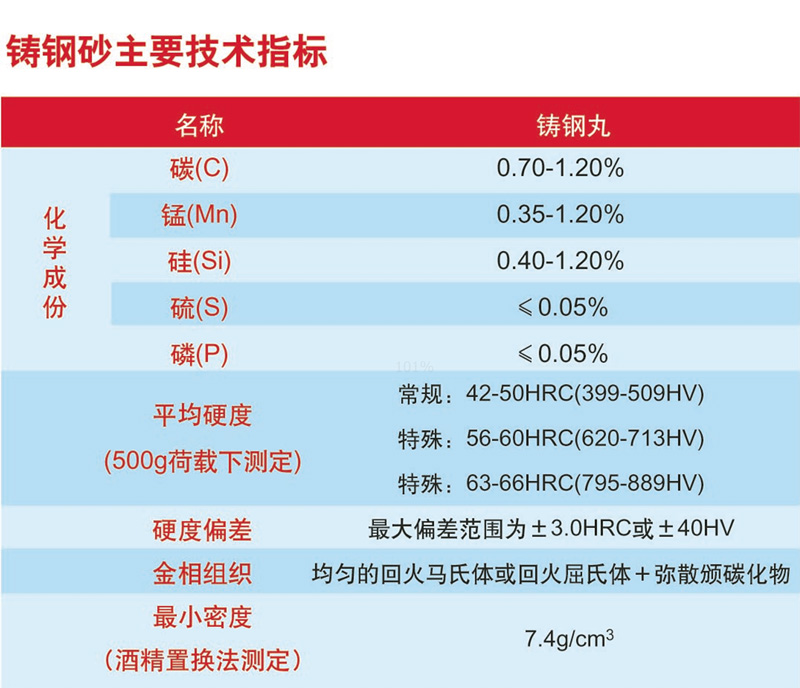 铸钢砂主要适用于滚简式、屜带式、吊钩式、转台式、悬链式、积入式、步进式、台车式、通过式等系列的拋丸清理机使用,以及喷丸机、喷砂机、钢材预处理生产线、钢板预处理生产线、钢结构预处理生产线、喷砂房等多种范围。